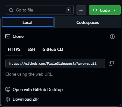 Run: “git clone https://github.com/pixiesidequest/aurora.git”